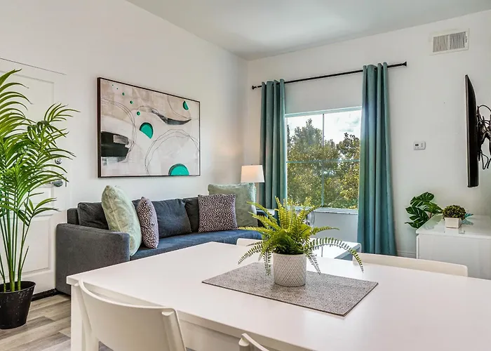 Gasten kunnen kiezen voor een verblijf in 1 Mi To Disney World Modern Orlando Condo! wanneer ze de Lake Buena Vista wijk in Orlando bezoeken.